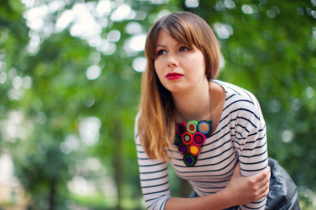 wyglądasz świetnie! zawsze z przyjemnością oglądam Twoje stylizacje, ale ta jest jedną z moich ulubionych. świetna spódnica, piękny naszyjnik, do tego paski – jestem zachwycona!