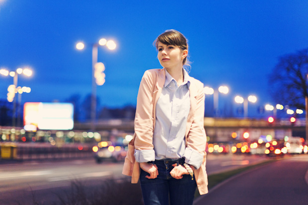 Bardzo fajna stylizacja, dobre połączenie kolorów i materiałów. Jeszcze jedna rzecz mi się podoba – kolor Twoich ust i uczesanie. Powinnaś częściej się nam tak pokazywać 🙂 Pozdrawiam!