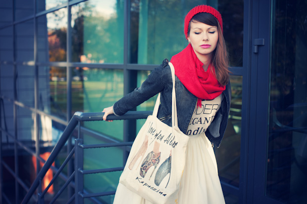 czerwony kolor daje całej stylizacji odrobinę życia! 🙂