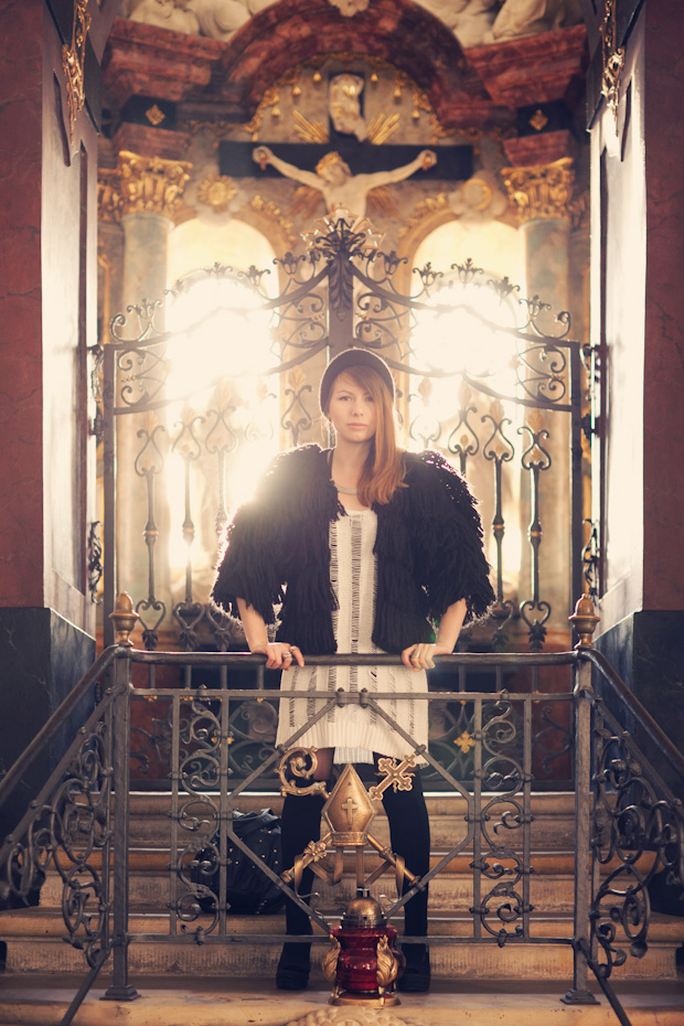 Pomysł dobry, zdjęcia naprawdę fantastyczne (trzeba przyznać, że w kościołach bywa niesamowite światło). Ale patrząc na niektóre mam jednak wrażenie, że coś nie pasuje – może to te typowo żurnalowe pozy, które przybierasz na niektórych zdjęciach. Domyślam się, że chodziło o taki kontrast, ale nie do końca mnie to przekonuje.
