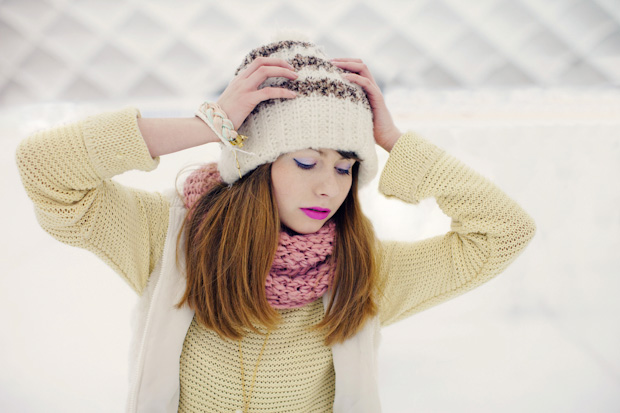 Idealnie zimowy zestaw. Makijaż też świetny 🙂