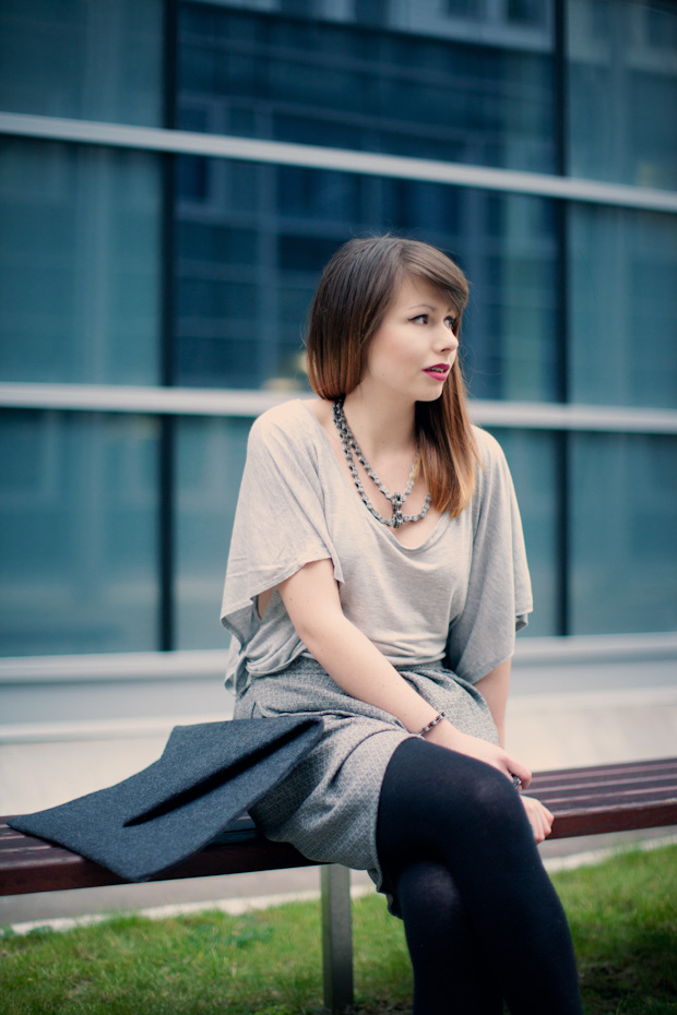 bardzo fajny zestaw, podobają mi się te wyłażące ze spódnicy rękawy i naszyjnik:)