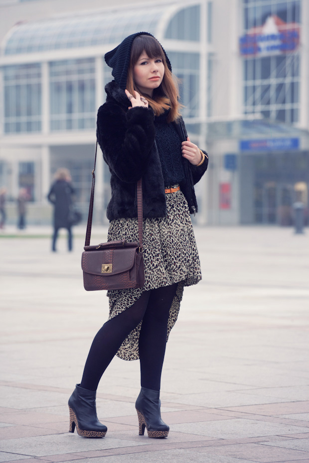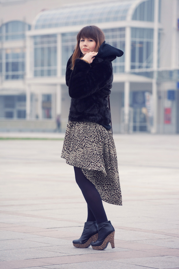 Świetne masz te buty, ale wydaje mi się (mimo,iż szalenie podoba mi się cętkowany wzór na tej spódnicy),że przeszycia w niej zastosowane sprawiają iż dziwnie się układa na zgięciach po boku i zrobił się taki zwis jak w spodniach typu „pump” i co w mojej opinii nie wygląda korzystnie. Poza tym szalenie podoba mi się Twoje futerko oraz włosy!:) Jestem częstym gościem na Twym blogu i generalnie jestem zachwycona Twoimi modowymi poczynaniami! Zawsze znajdę u Ciebie jakaś ciekawą inspirację. Pozdrawiam! 🙂