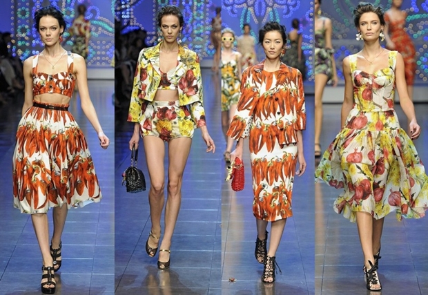 Dom mody Dolce&Gabbana w kolekcji wiosna-lato 2012 wypuścił serię ubrań zdobionych owocowo-warzywnymi printami. Od tamtego czasu usilnie poszukiwałam kulinarnych inspiracji. W akcie desperacji udałam się (aż) do kuchni i ugotowałam brokuły;)! Wtajemniczeni, w tym miejscu, powinni się uśmiechnąć. Jako, że ubieranie jest mi bliższe niż gotowanie (aż chce się dodać: nie czuję, że rymuję), nie osiągając pełnej satysfakcji, szukałam dalej. W końcu trafiłam na sukienkę (Ax- Paris), której wzór łudząco przypomina ten widziany na pokazie D&G.