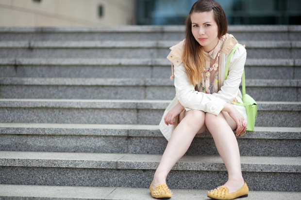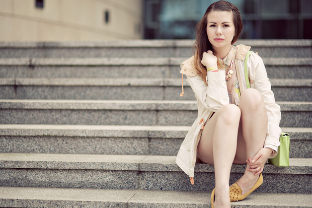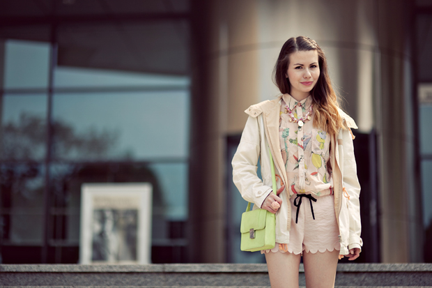 Niesamowicie ładna i dziewczęca stylizacja 🙂 Bardzo podoba mi się połączenie delikatnych kolorów z limonkową torebką. Pozdrawiam 🙂