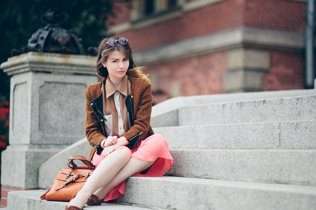 Fryzura i stylizacja podobają mi się bardzo! Szczególnie kurtka i torba. Zauważyłam też, że nikt nie zwrócił uwagi na brak twoich cudownych piegów! Zgaduję, że to efekt innego/mocniejszego kosmetyku. Już za nimi tęsknię….