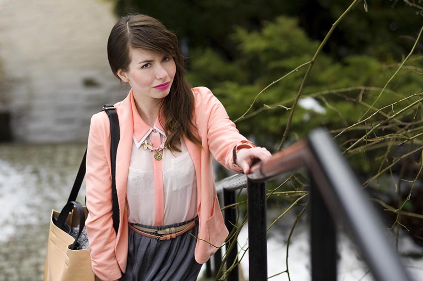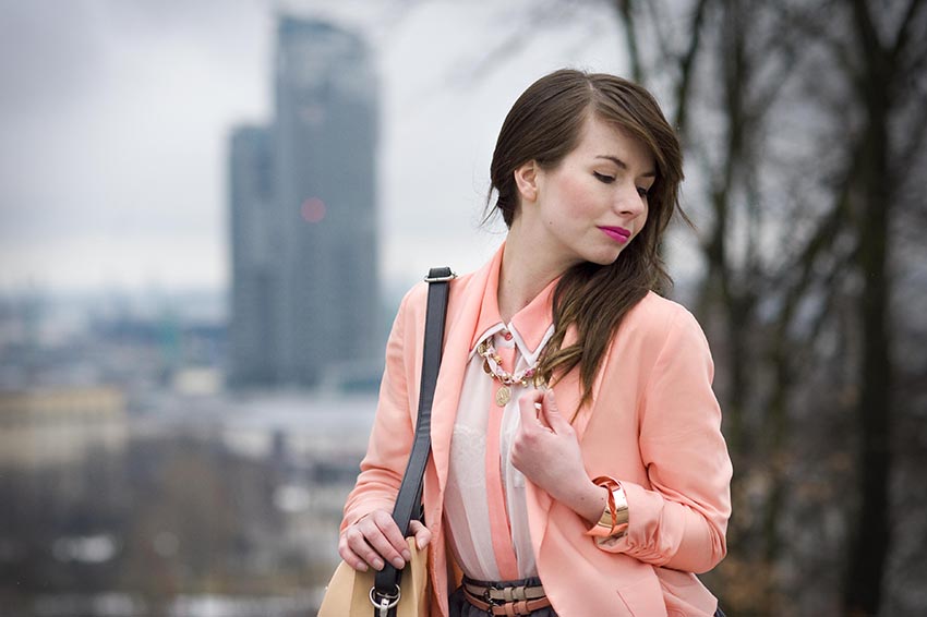 Świetny zestaw, uwielbiam pastele. A koszula, marynarka wyglądają ślicznie wraz ze złotą biżuterią… Pozdrawiam 😉
