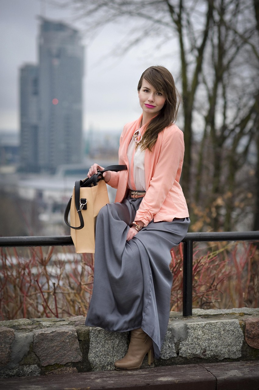 Pastelowa góra i szara spódnica tworzą fenomenalne i niebanalne połączenie kolorystyczne!