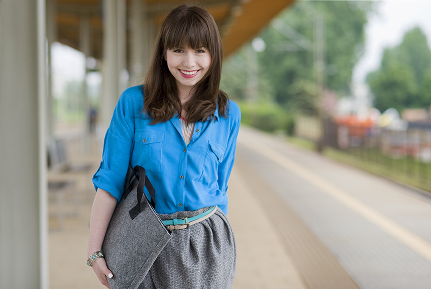 Moim zdaniem ta spódnica w połączeniu z luźną górą zaburzyła Twoje proporcje i nawet paski nie pomogły wyeksponować talii. Za to Twój uśmiech po zdjęciu aparatu jest naprawdę ekstra!:)