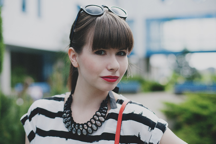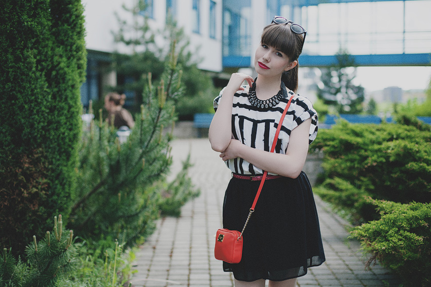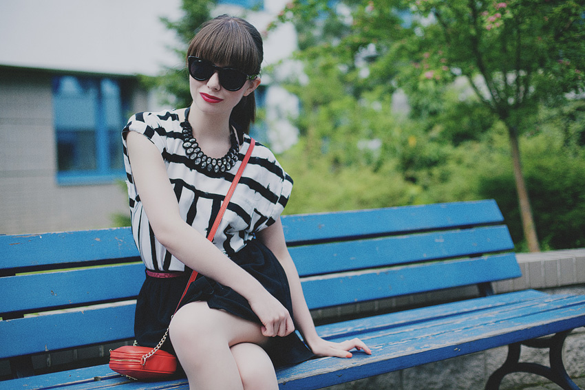 Śledzę twojego bloga regularnie już mniej więcej od roku. Czasami niektóre stylizacje podobają mi się bardziej, czasami mniej, ale NIGDY nie pomyślałam, że głupio wdzięczysz się do kamery. Może autorka postu sama powinna spróbować swoich sił na blogu? Ta stylizacja bardzo mi się podoba – moje ulubione kolory czarny, biały – super. Pamiętam, że kiedyś też super wyglądałaś na biało – czarno w takiej oryginalnej sukience. Pozdrawiam