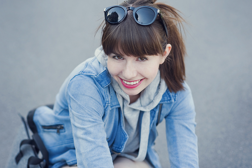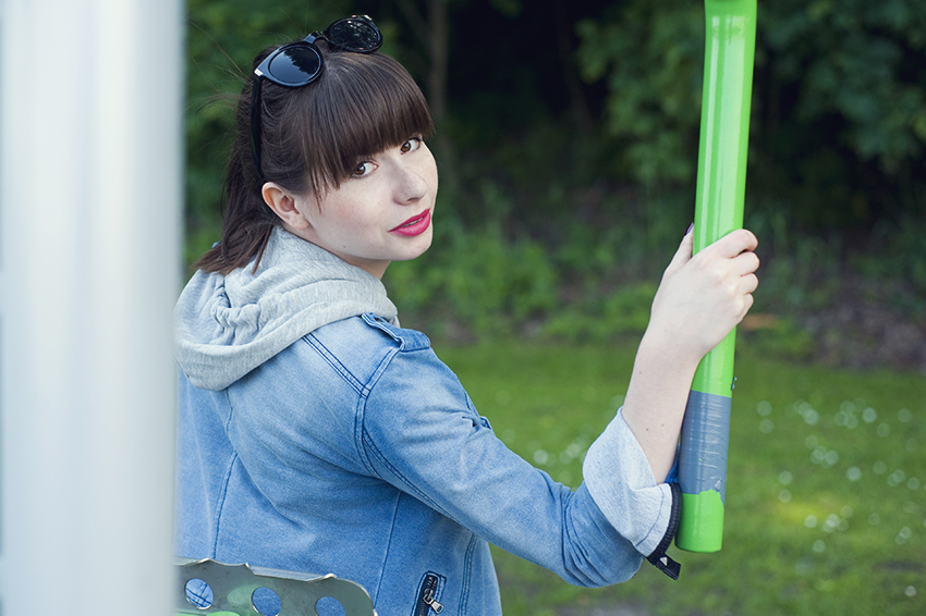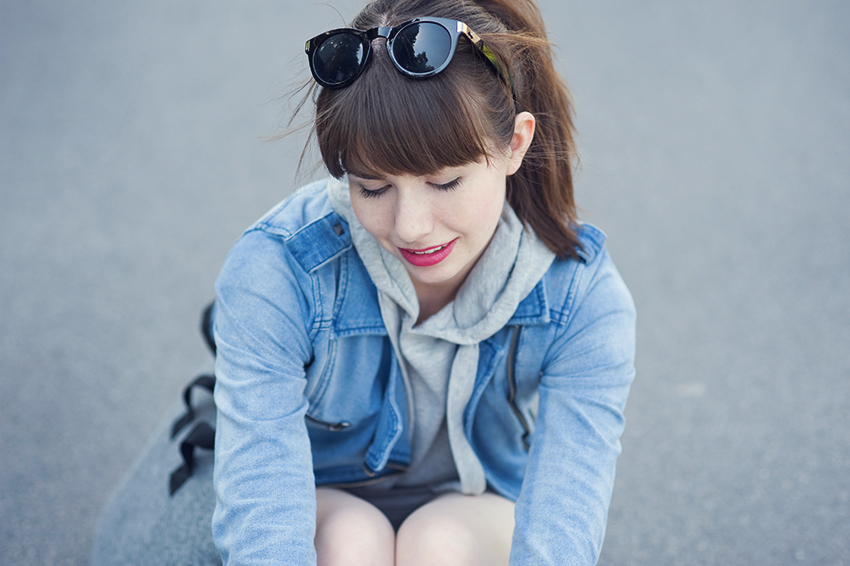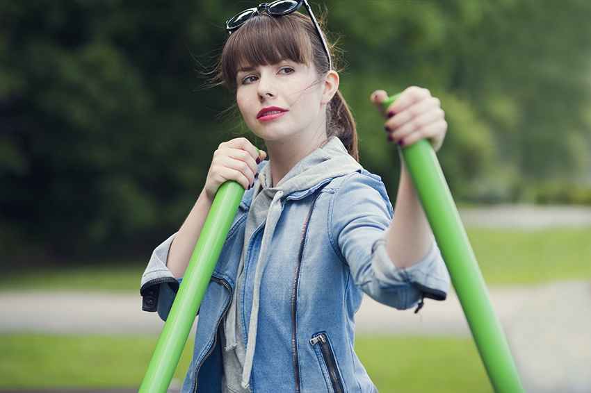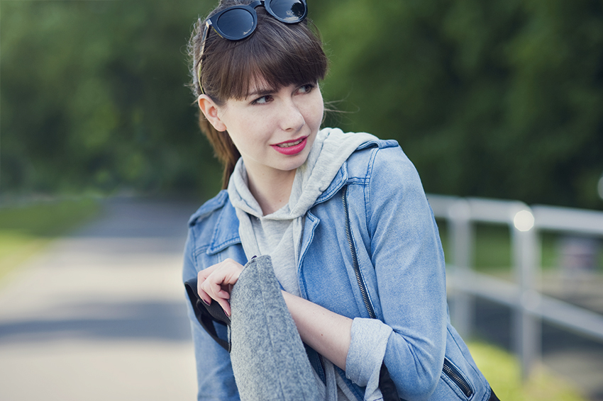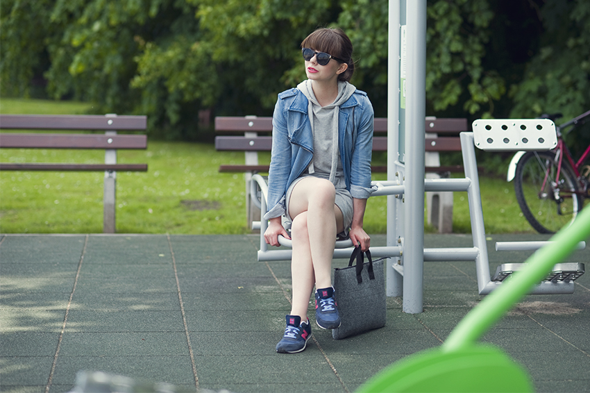 Sportowa sukienka w połączeniu z jeansową kurtką – idealnie!